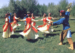 初一开始拜年,拜年的人一进门就要打开主人家的锅,抢吃年糕,表示亲密无间,然后吃猪寿子、手把肉,妇女之间要互相赠礼,礼物有烟叶、奶皮、糕点和冻肉,春节一直过到正月十六。