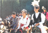 哈萨克族人服饰男女各异。男子的服饰宽大结实,便于骑马和放牧;妇女服饰色彩艳丽,样式繁多。过去,牧民的服饰大多用牲畜毛皮制作。