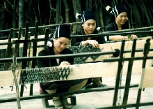 木漆工艺 独木器的制作,在黎族家庭手工业中,也颇具特色。用一完整木,不钉不卯,制作成器具,在他们生产、生活领域中无所不见。生活用具如挂衣物的挂钩,捣蒜的臼杵,切东西的砧板,木凳、木桶、木甑等;饲养用的猪槽、狗槽、牛铃等;农业生产工具,有整地用的木铲、木滚,舂米用的大小木臼、木杵等;乃至渡水用的木舟,丧葬用的木棺等等,都是独木制作。