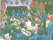 土家族青年男女在结婚的前一天晚上,分别举行陪十弟兄、陪十姊妹仪式,即新郎、新娘在自家分别由九个未婚男青年、九个未婚女青年陪伴,围席而坐,饮酒唱歌,通宵达旦,祝贺新郎、新娘婚姻幸福,男女双方分别称为“十弟兄”、“十姊妹”。